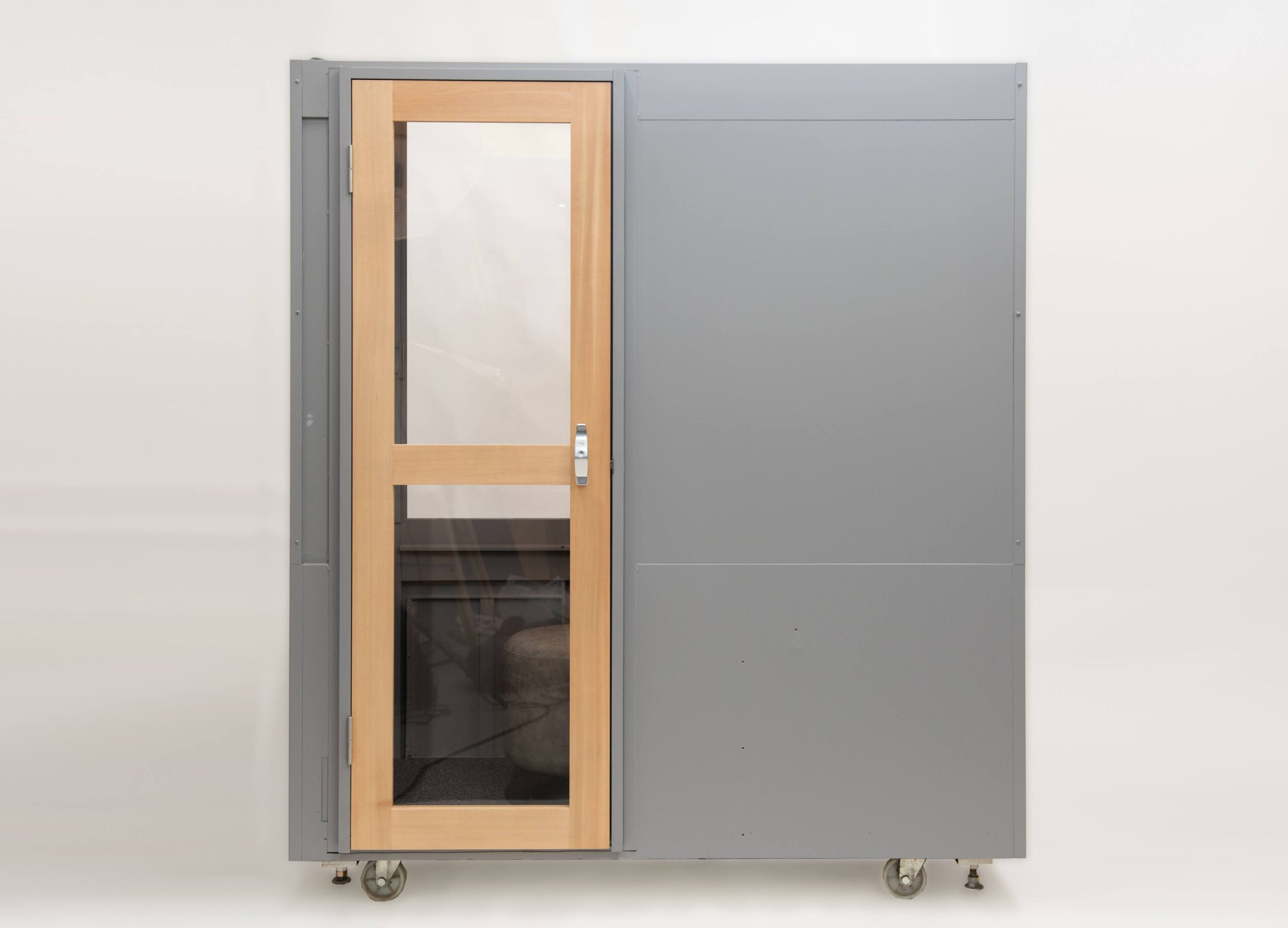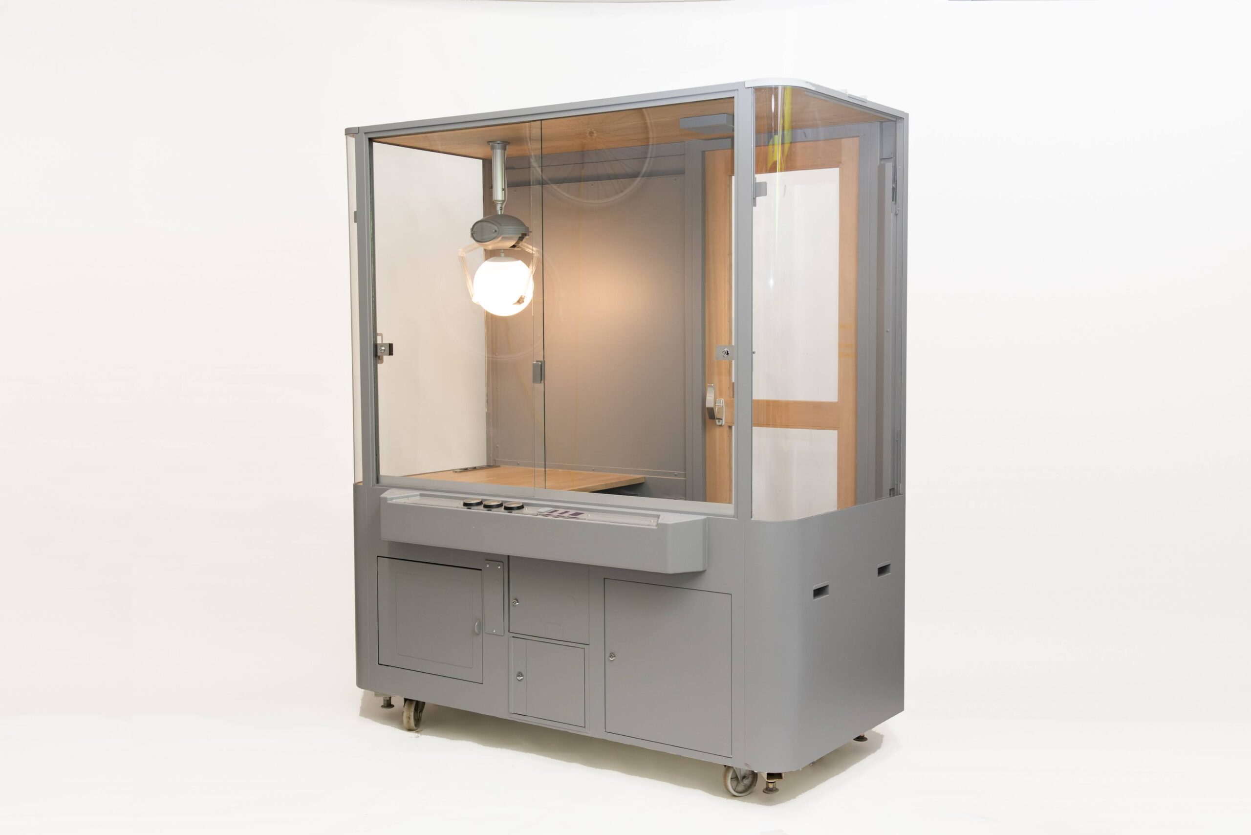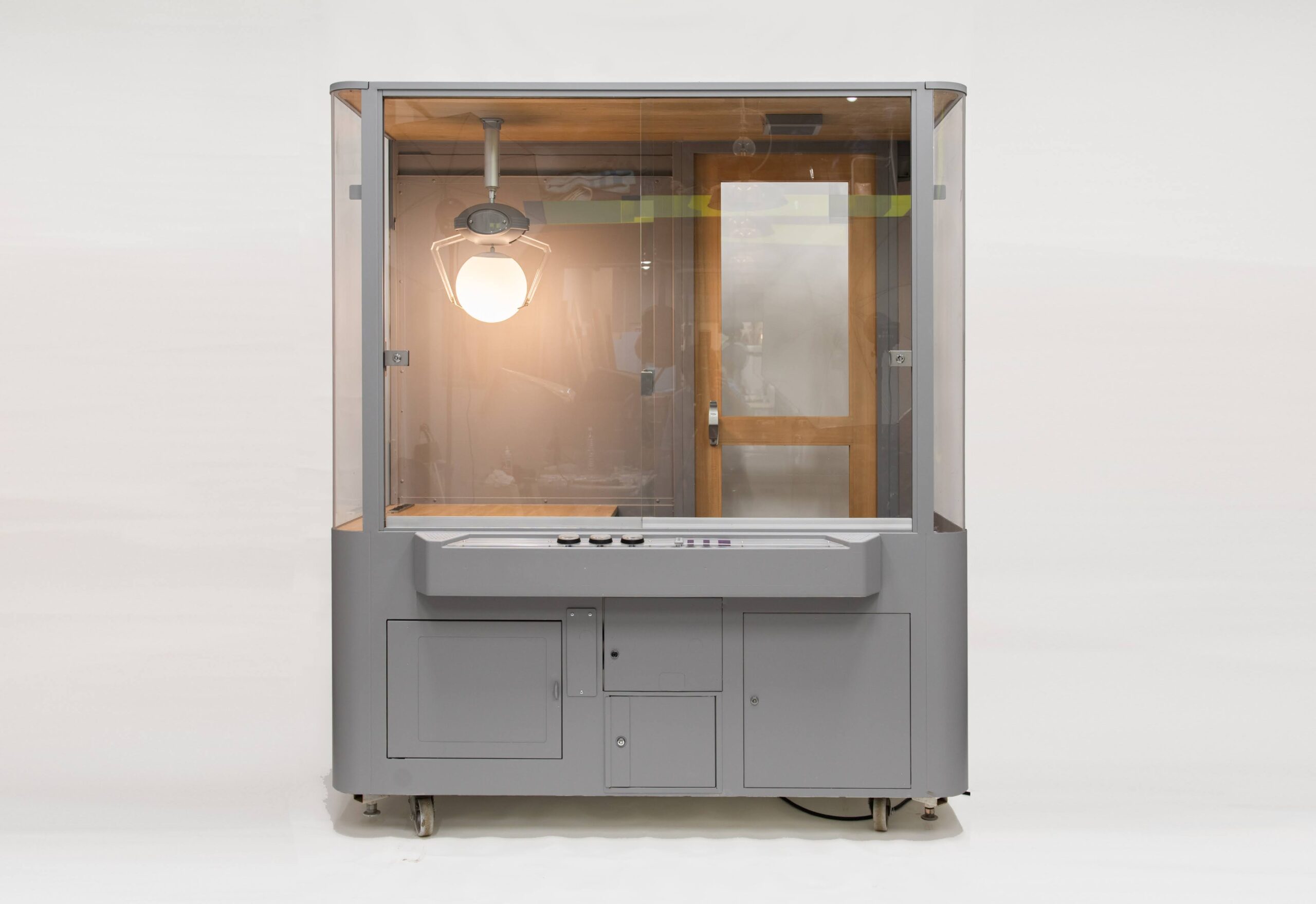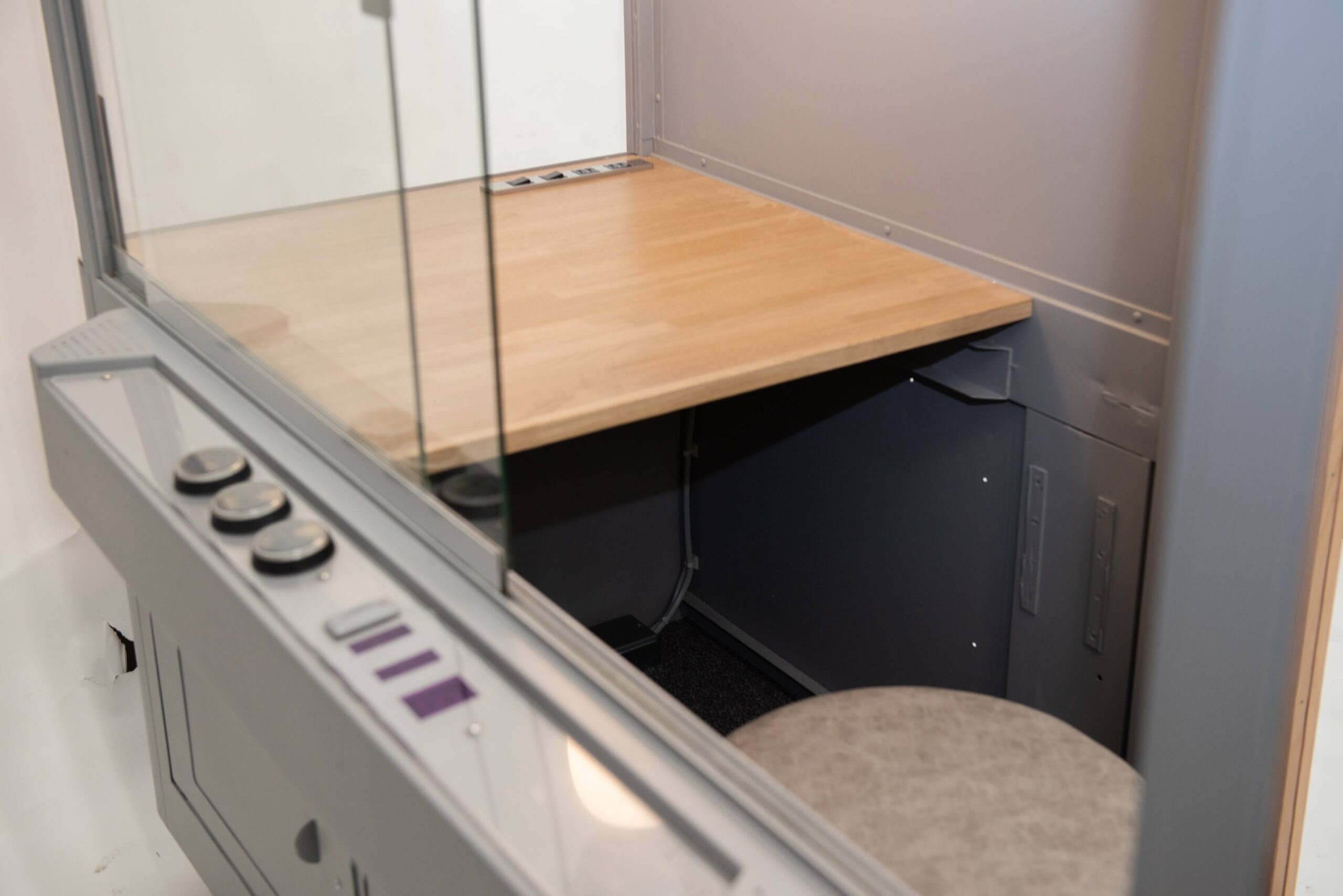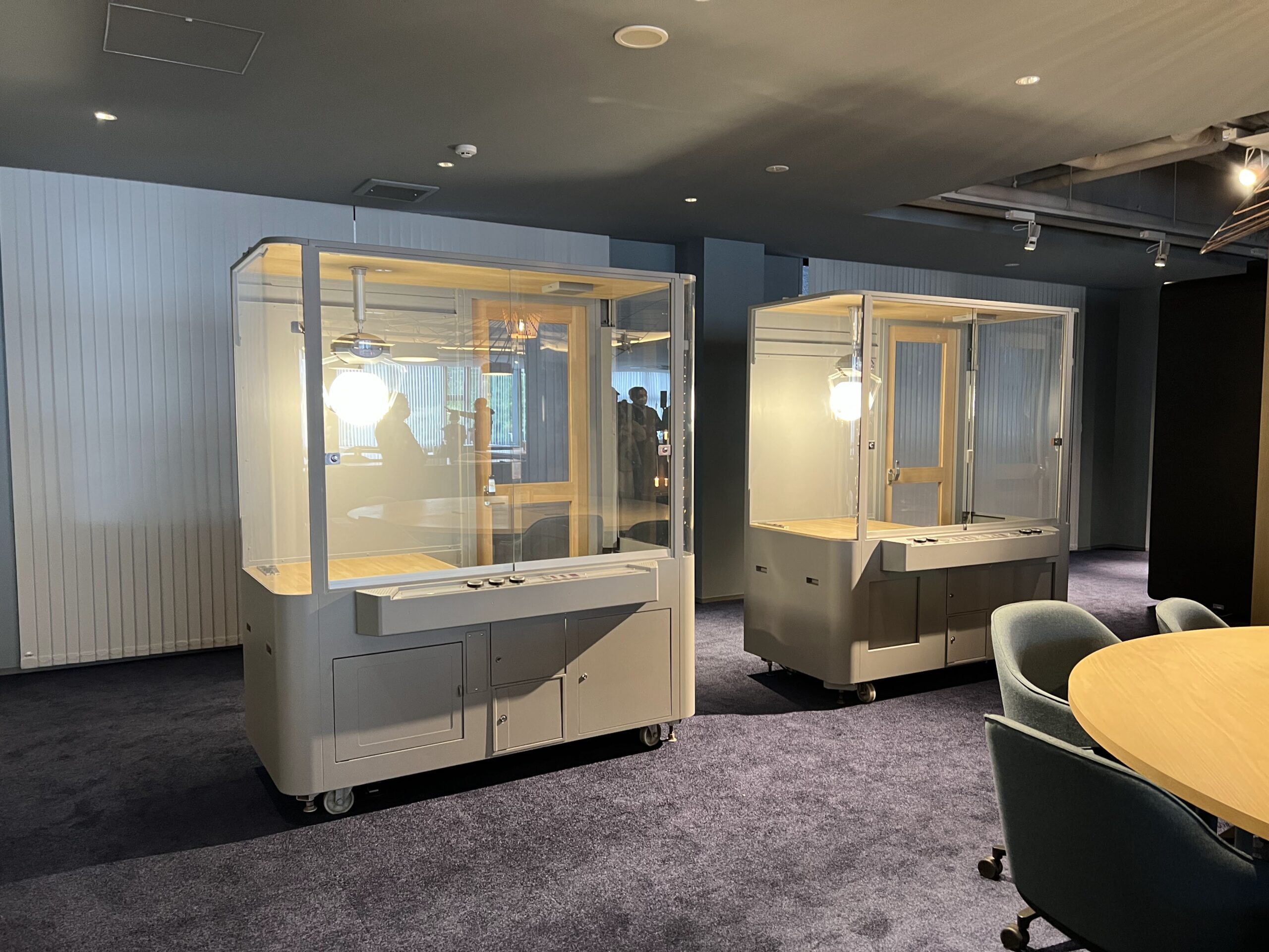 クレーンゲームの筐体を活用・カスタマイズしたワークブース。リモートワーク等のニーズが高まるなかで増えつつあるワークブースを、存在自体がユニークで楽しげなかたちにデザインした。