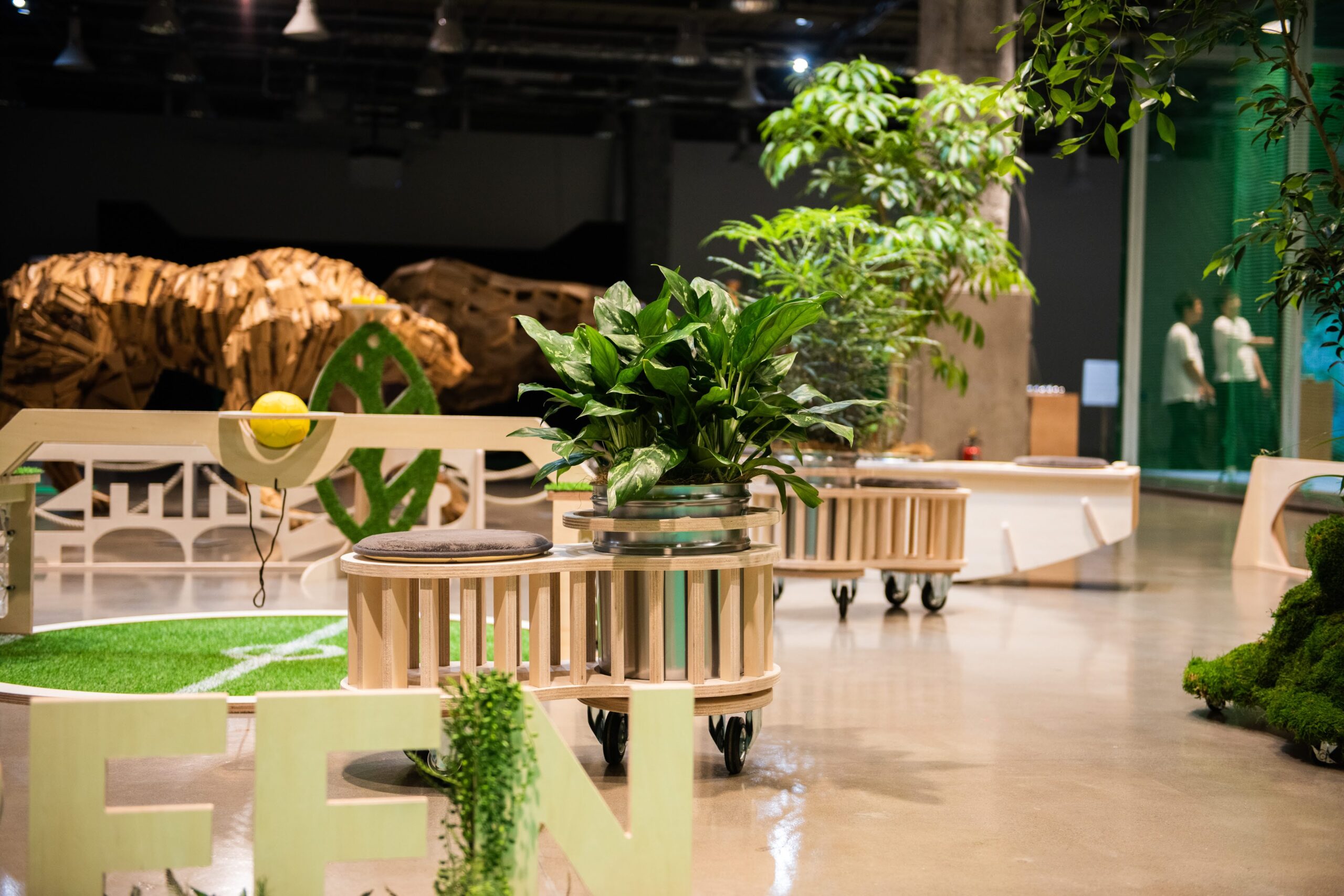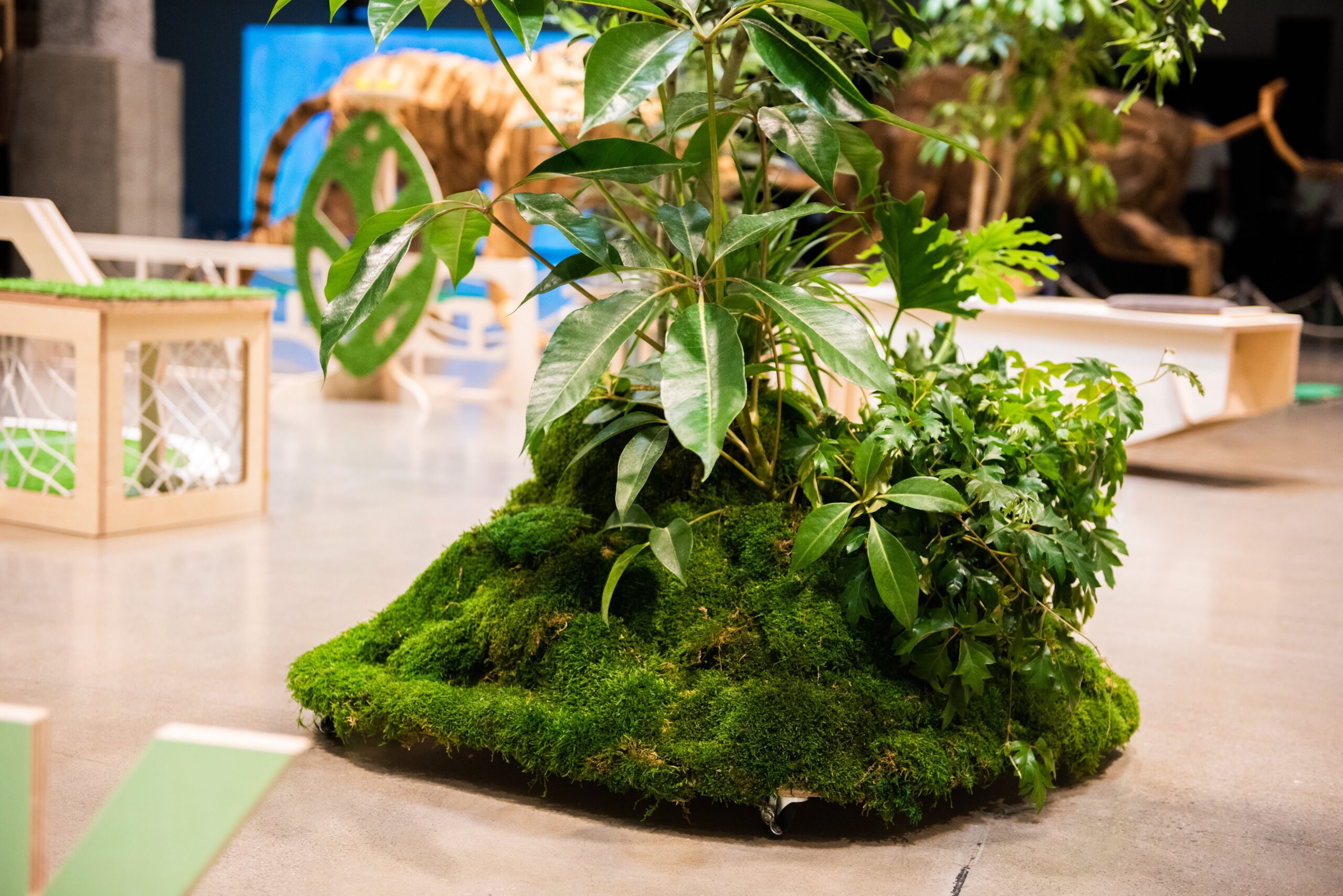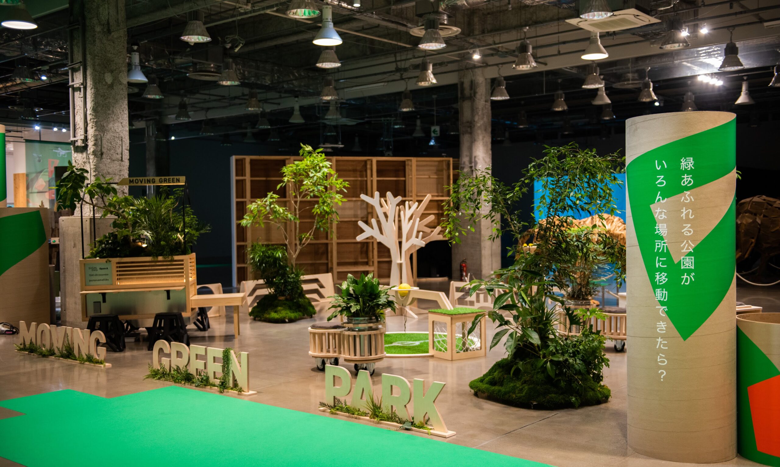 2024年7月〜9月に東京・有楽町SusHi Tech Squareで行われたイベント「人間×自然×技術=未来展」に出展した移動できる公園パッケージ。植物と遊具/家具が融合したような什器を制作し、コンパクトなスペースながらも公園のように楽しく遊べる場所を形成した。酷暑により夏場に公園で遊べないという環境課題に対して、屋内のちょっとスペースでも公園として子供が楽しめる場所をつくり出すツールとして今後も発展を目指していく。