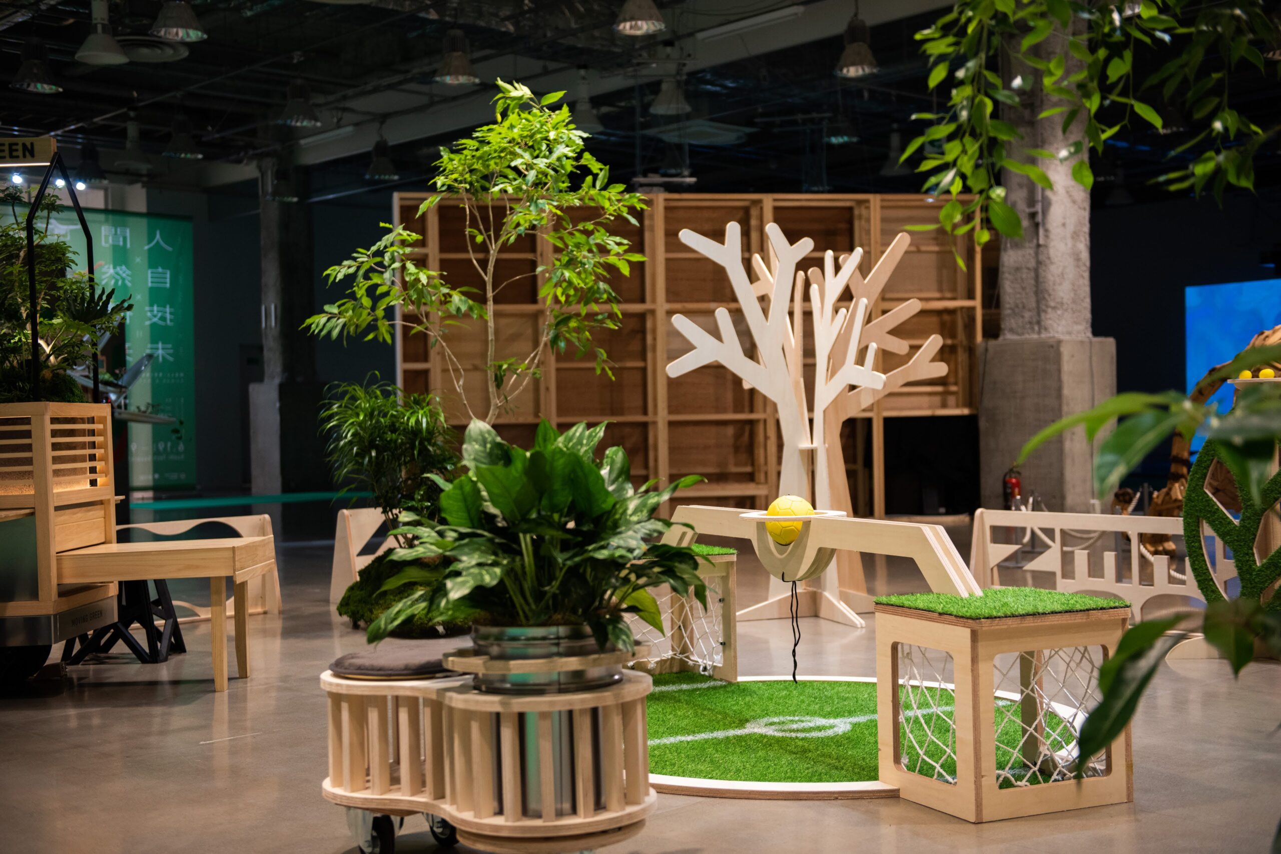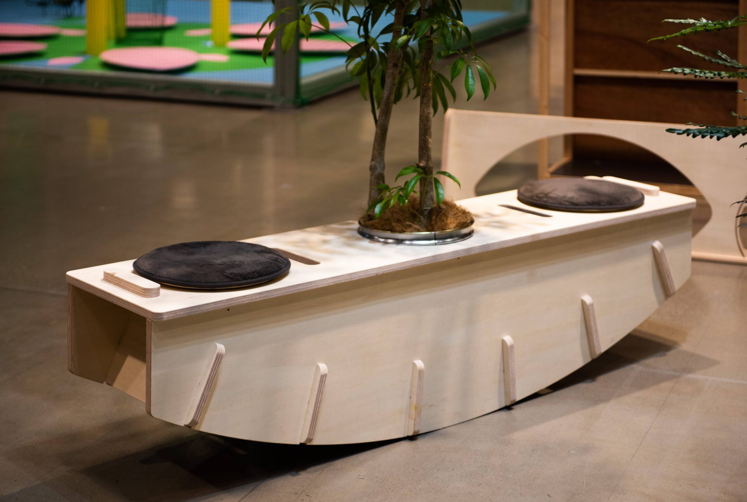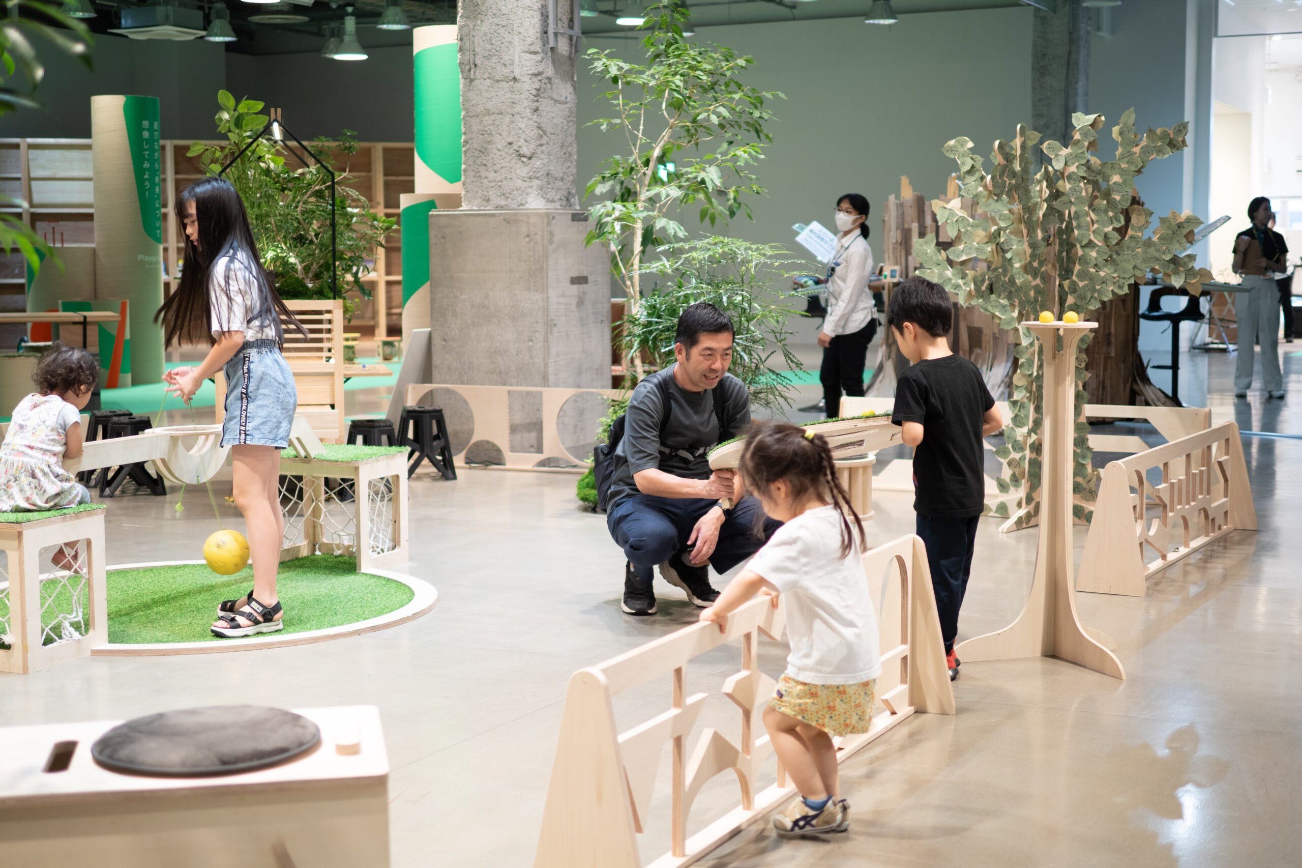 2024年7月〜9月に東京・有楽町SusHi Tech Squareで行われたイベント「人間×自然×技術=未来展」に出展した移動できる公園パッケージ。植物と遊具/家具が融合したような什器を制作し、コンパクトなスペースながらも公園のように楽しく遊べる場所を形成した。酷暑により夏場に公園で遊べないという環境課題に対して、屋内のちょっとスペースでも公園として子供が楽しめる場所をつくり出すツールとして今後も発展を目指していく。