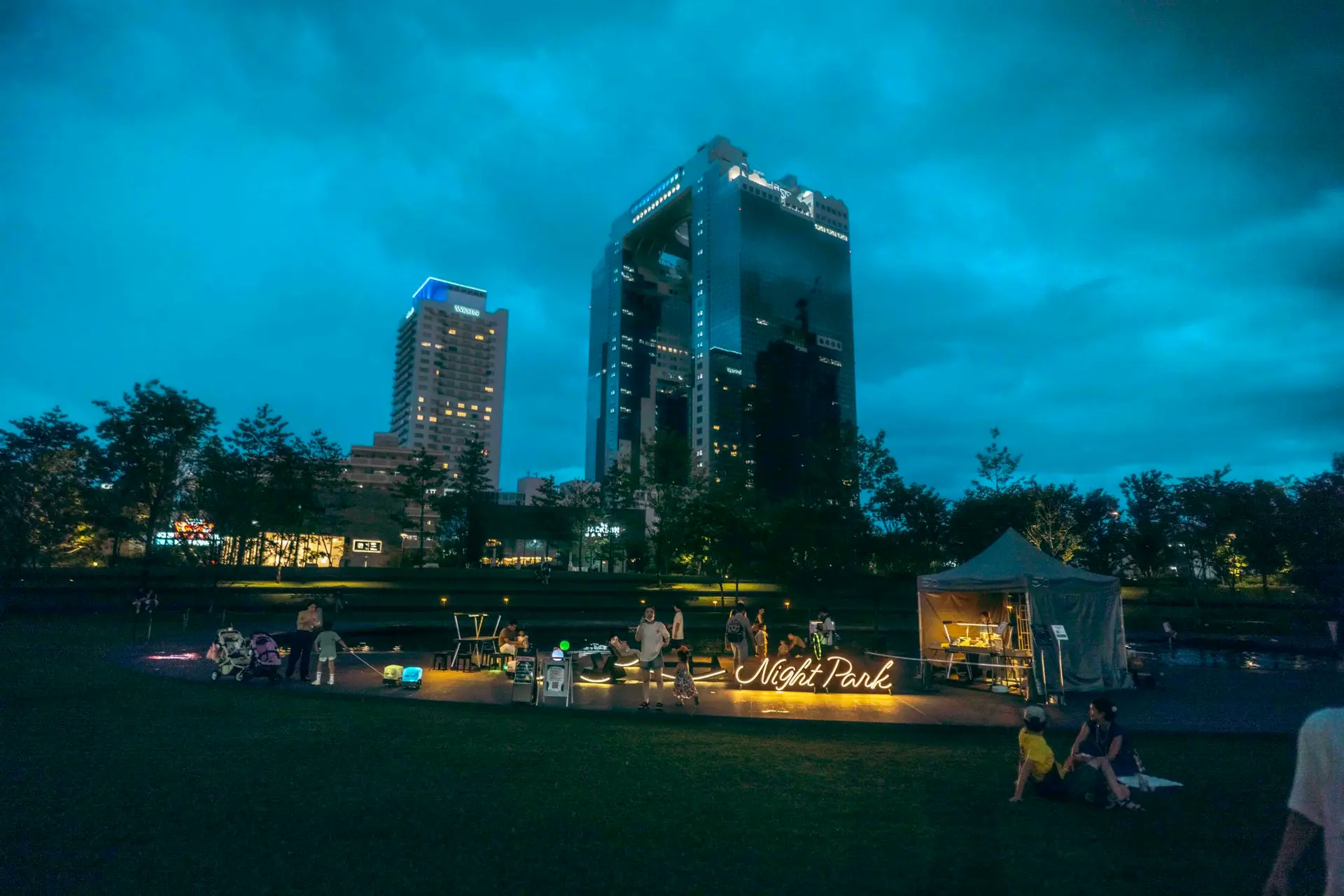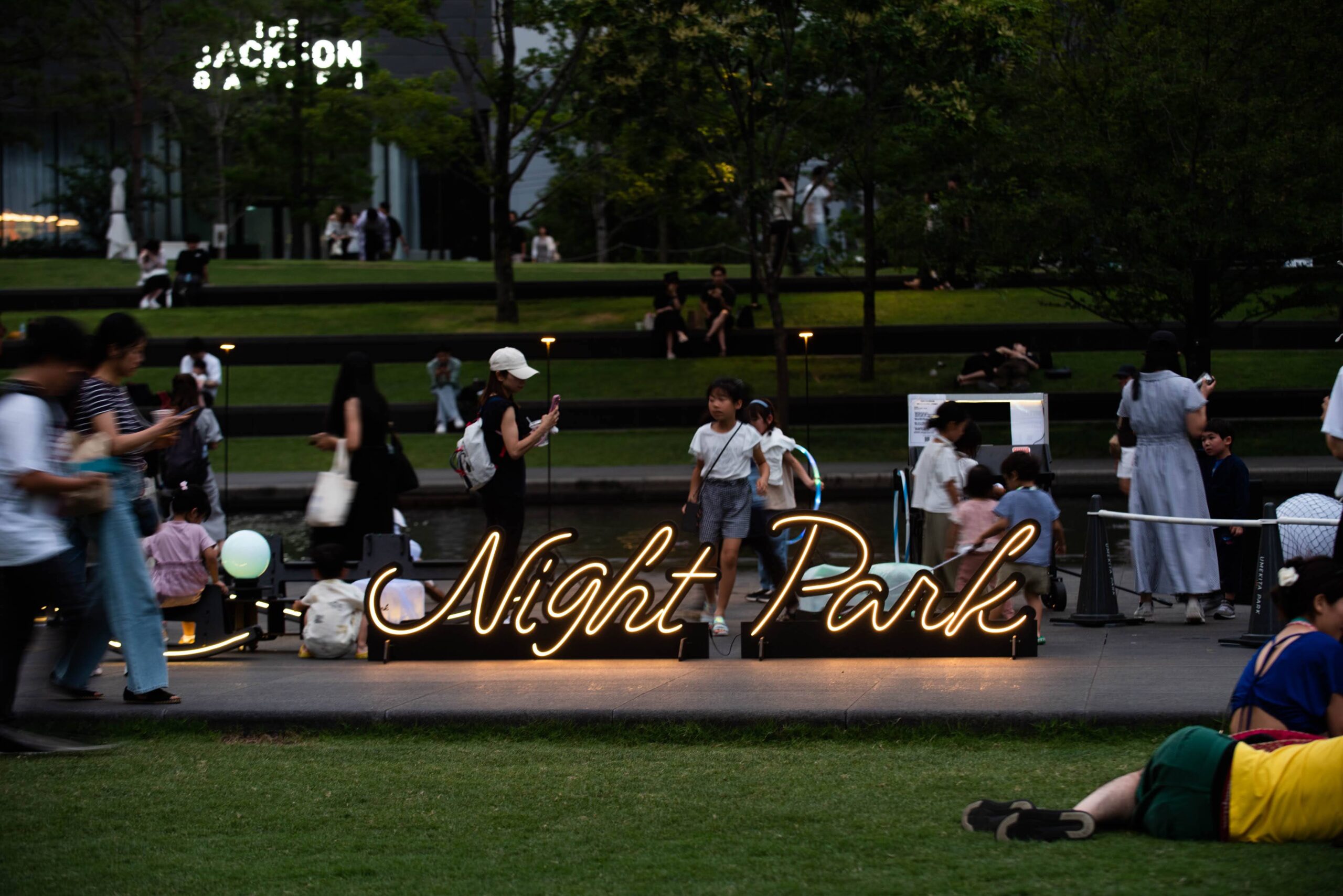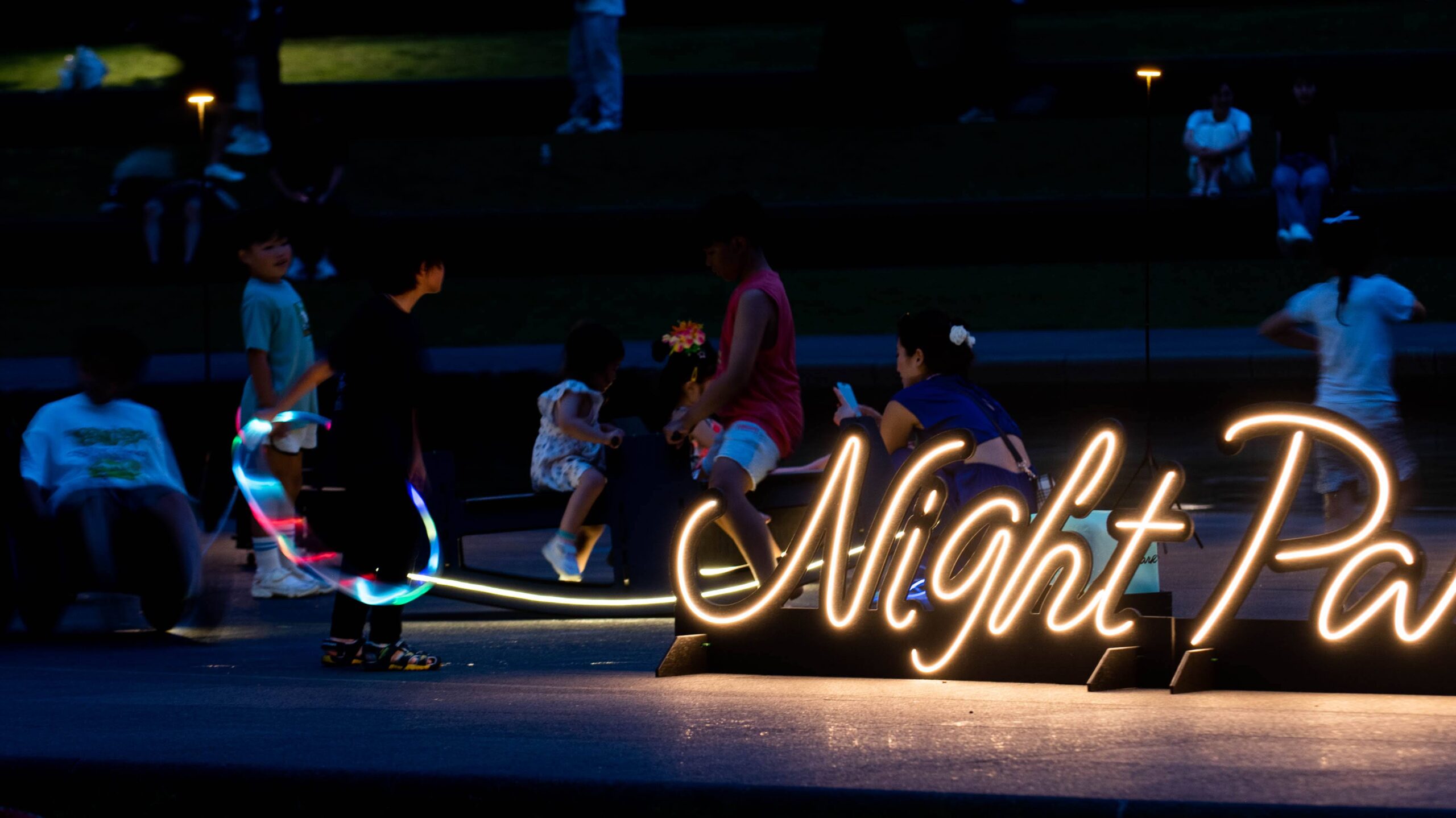 子どもに安全で大人も心地よく過ごせる、そんな新しい公園の可能性を探る実証実験「Night Park」をグラングリーン大阪で開催。光る遊具や家具、什器などのプロダクトを展開し、「夜の公園の新しい可能性」を探った。企画パートナー:合同会社NEWSKOOL